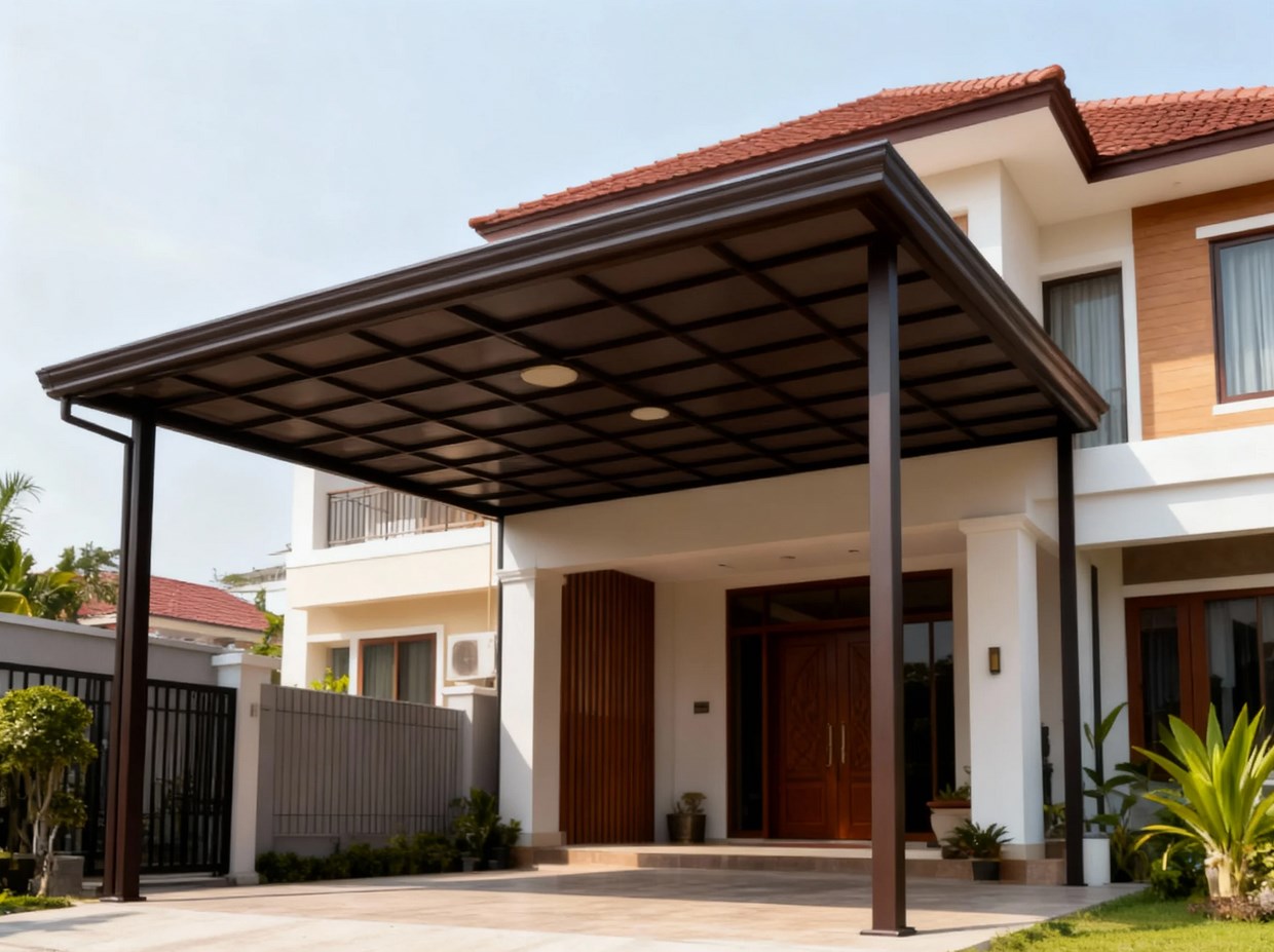 Jangan lupakan detail kecil seperti kemiringan atap dan jalur air hujan. Kanopi yang tampak bagus tapi bocor tentu bikin repot. Pastikan air mengalir lancar agar rangka tidak cepat rusak.